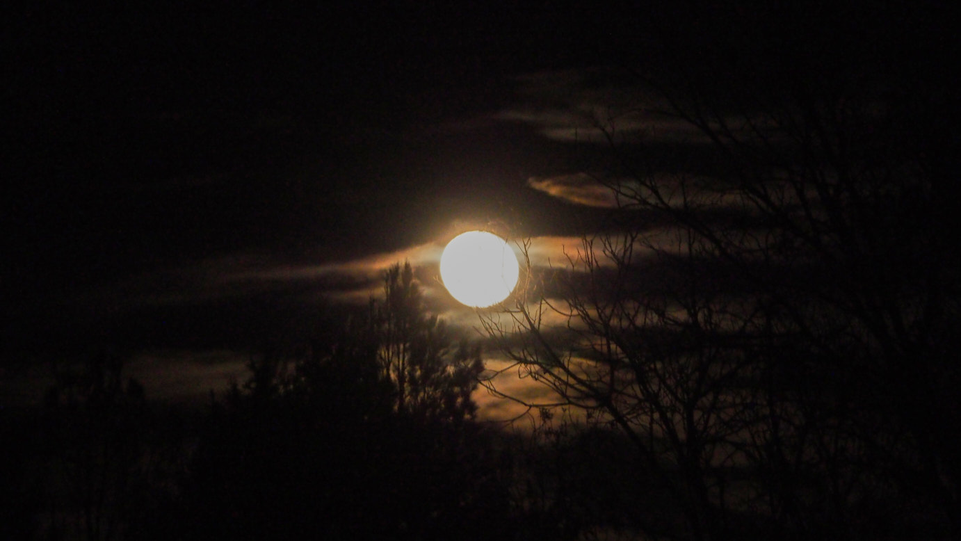 The moon suddenly stands up in the darkness,