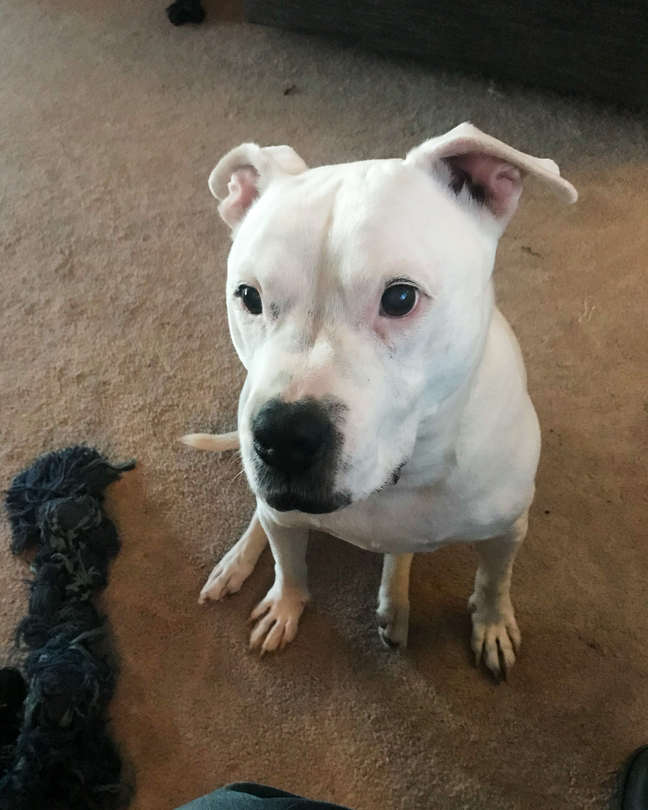 of the black dog, the look that says, If I could I would bite